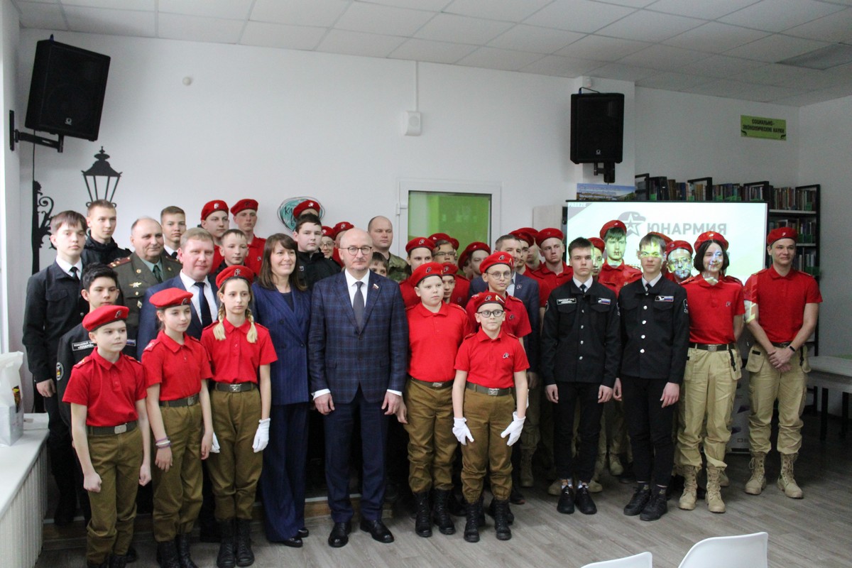 Основным же мероприятием визита стало общение с юнармейцами и участниками поисково-спасательного отряда в центральной библиотеке имени Кердана. «Юнармия» — детско-юношеское общественное движение, целью которого является патриотическое воспитание подрастающего поколения российских граждан. Целями движения являются всестороннее развитие и совершенствование личности детей и подростков, удовлетворение их индивидуальных потребностей в интеллектуальном, нравственном и физическом совершенствовании, повышение в обществе авторитета и престижа военной службы, сохранение и приумножение патриотических традиций.