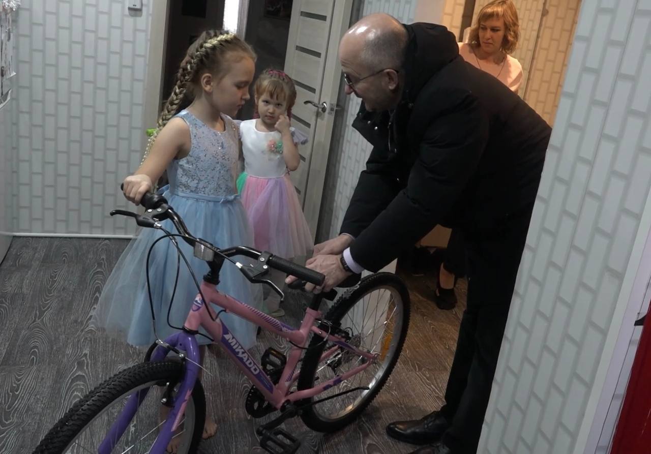 Олег Цепкин вручил велосипеды сестрам из Кизильского района