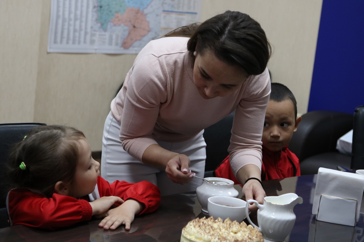 «Накануне праздника пригласили в гости семью, с которой мы знакомы два года со времен пандемии. Юлия - мама шести детей и она в течении двух лет, весь период пандемии выступает у нас волонтером, работала во всех акциях, которые проходили у нас в медицинских организациях в период пандемии. Шестой малыш родился в семье недавно, сегодня ему 20 дней. Эта семья – воплощение девиза нашего проекта- «Крепкая семья».