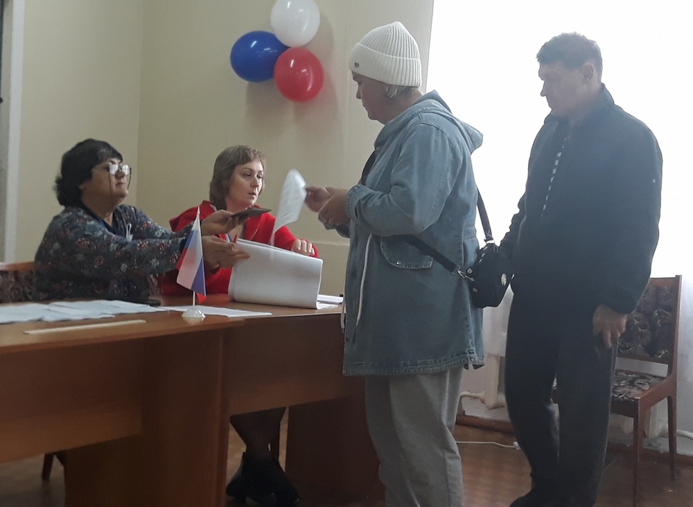 Избирательная комиссия работает в полном составе, все необходимое подготовлено заранее. Граждане активно приходят на участок, голосуют семьями.