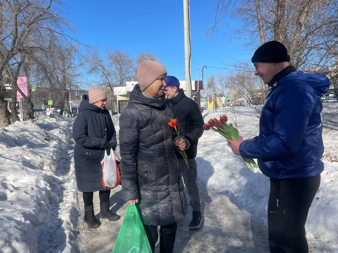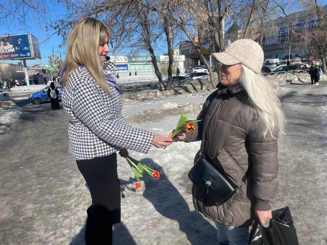 Представители Миасского местного отделения партии «Единая Россия» совместно с волонтерами «Молодой Гвардии» создавали праздничное настроение для жительниц города. Активисты дарили женщинам тюльпаны и теплые слова