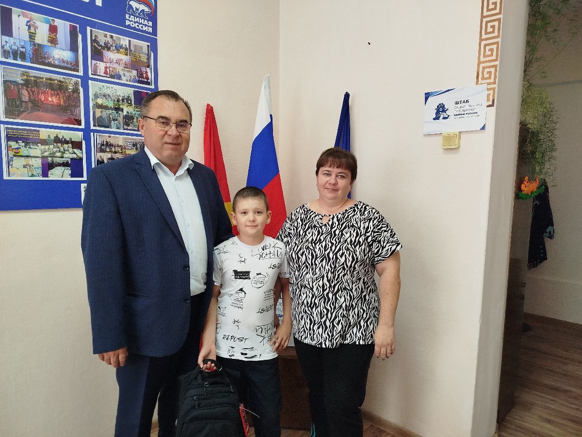 В рамках акции «Собери ребёнка в школу» в Общественную приемную поступило обращение от многодетной матери – Нины Козловой. Помощь была оказана депутатом Владимиром Заплатиным и Кизильским местным отделением партии «Единая Россия»: старшему ребенку Дмитрию вручен рюкзак с необходимыми канцелярскими принадлежностями.
